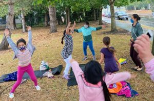 More growth emerged from there. A children’s class parent worked with Athay to develop a food-bank project for the apartment complex where they live, and Viji Karthik and other neighbors help maintain it. A class for pre-schoolers was started. A child in the Grade 2 class began hosting devotional gatherings for the families — first online, then outside with safety precautions.
